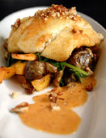 Grind almonds, saffron threads, whole wheat pita, salt, and pepper in grinder. Wisk egg white and brush on fish. Roll fish in almond mixture. Bake at 400 for 20 minutes. You may like to brown the fish on both sides lightly and then bake to make it moist.